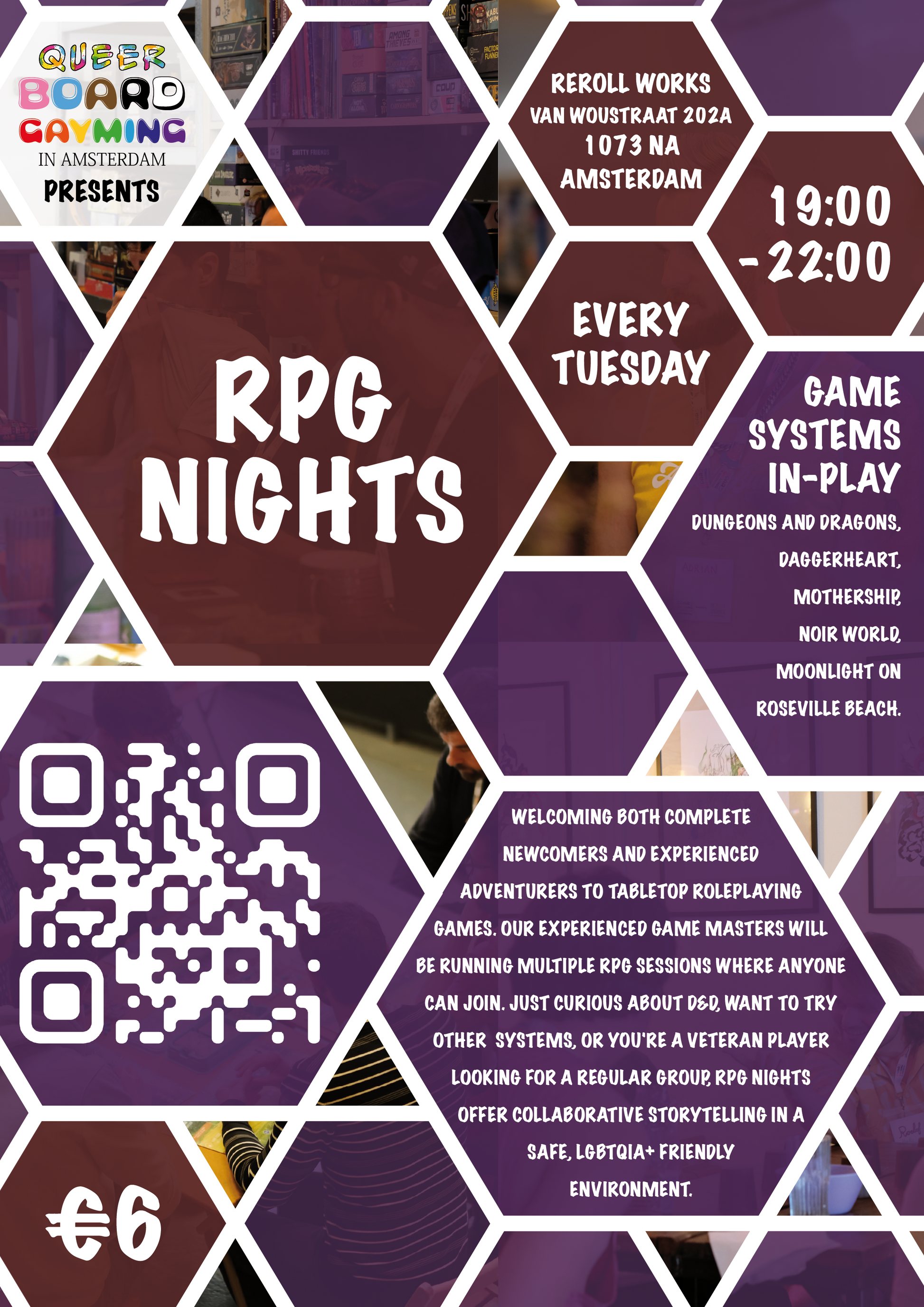 Queer RPG Nights welcome both newcomers and seasoned adventurers to the world of tabletop roleplaying games. It is the perfect opportunity to dive into collaborative storytelling in a safe, LGBTQIA+-friendly environment.